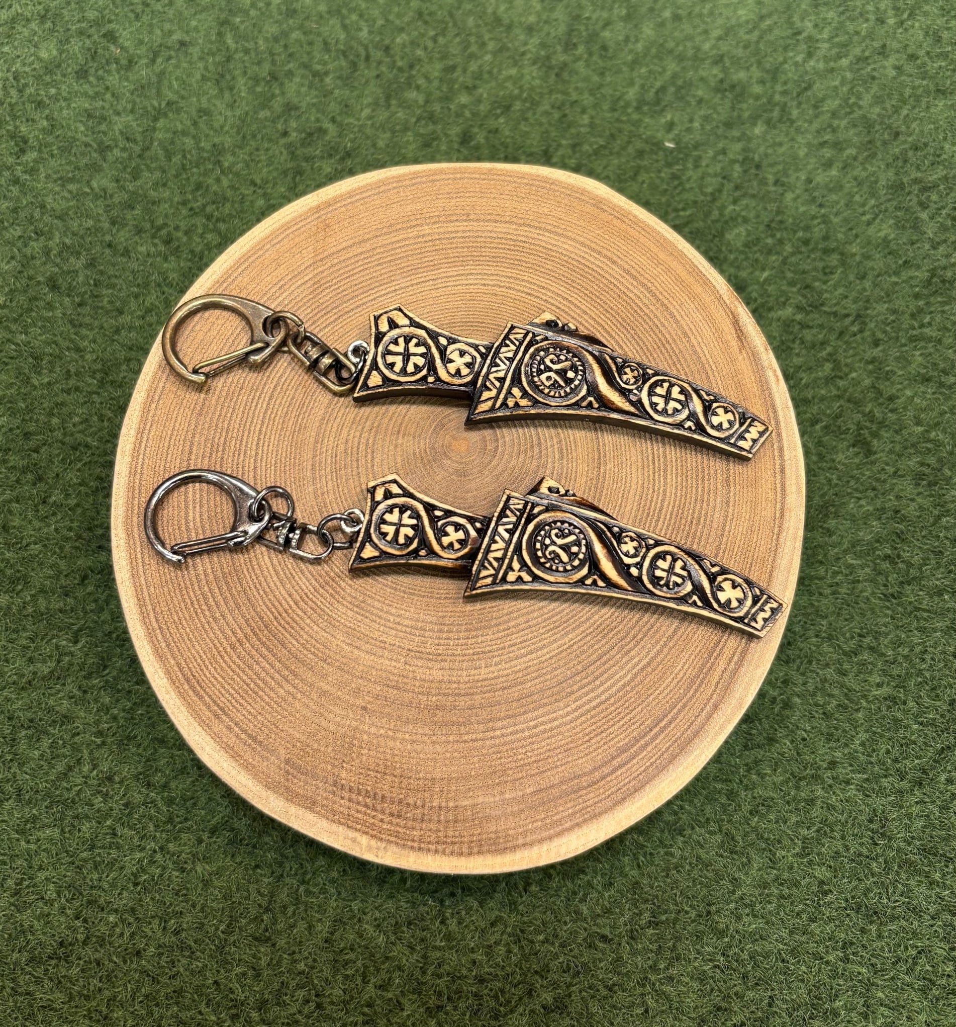アイヌ文化の象徴であるマキリをモチーフに、精巧にデザインされたおしゃれなキーホルダーです。